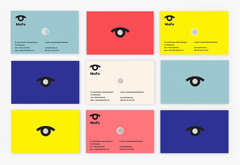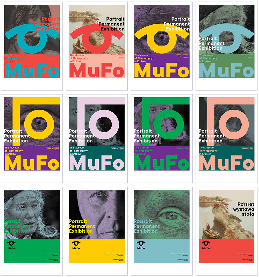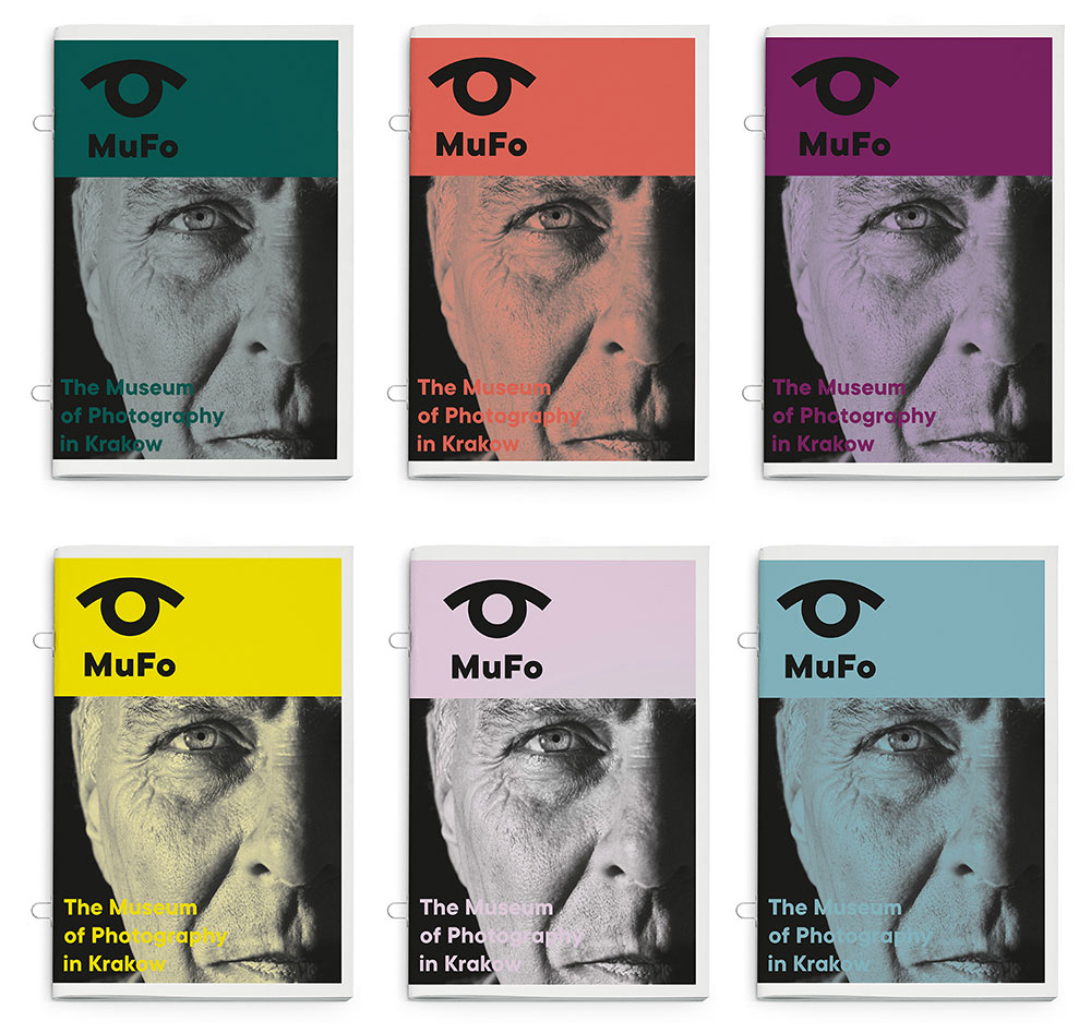 首先,图形部分是一个眼睛又是一个相机,这两个元素是对摄影最直接的表现。通过图像的变化,可以扩展出不同的眼睛和抽象的相机图形。整体的视觉信息的承载比之前更加简约,特别是缩写的名称(Muzeum Fotografii 的前两个字母Mu和Fo)更易于阅读和记忆,对于外国人来说更容易发音(深圳品牌设计)。