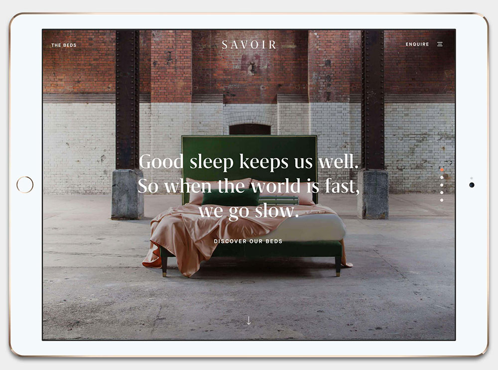 最近,Savoir Beds进行了一次大规模的品牌重塑活动,希望让这个具有百年历史的品牌继续保持青春和活力。Savoir Beds与伦敦设计工作室Without提供多半年的合作,为Savoir Beds重新定位设计,打造出“睡眠是值得投资的奢侈品”这一核心品牌价值。